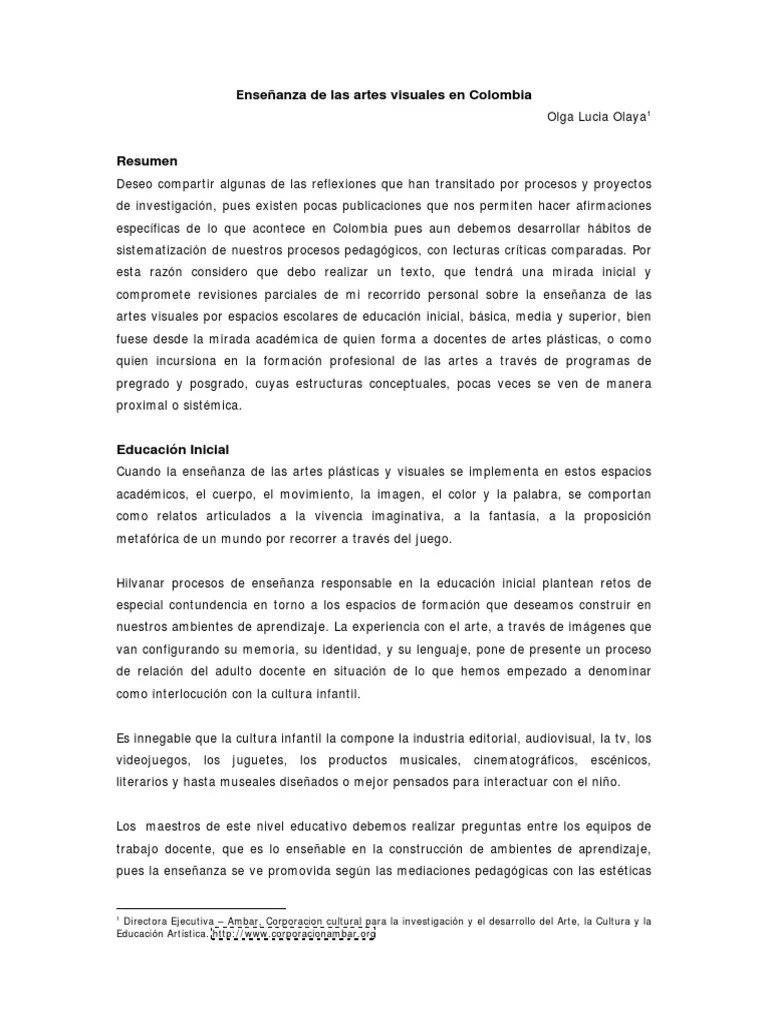 La enseñanza de las artes complementa el proceso educativo desarrollando las destrezas básicas de lectura mediante las tareas de... Luis fuentes ghislain 24 de mayo de 2016 vºbº director vºbº autor. El arte en la educación inicial documento n. Revisado y aprobado por la psicóloga maría alejandra castro arbeláez el 02 abril, 2020. Beneficios de las artes plásticas para la educación.